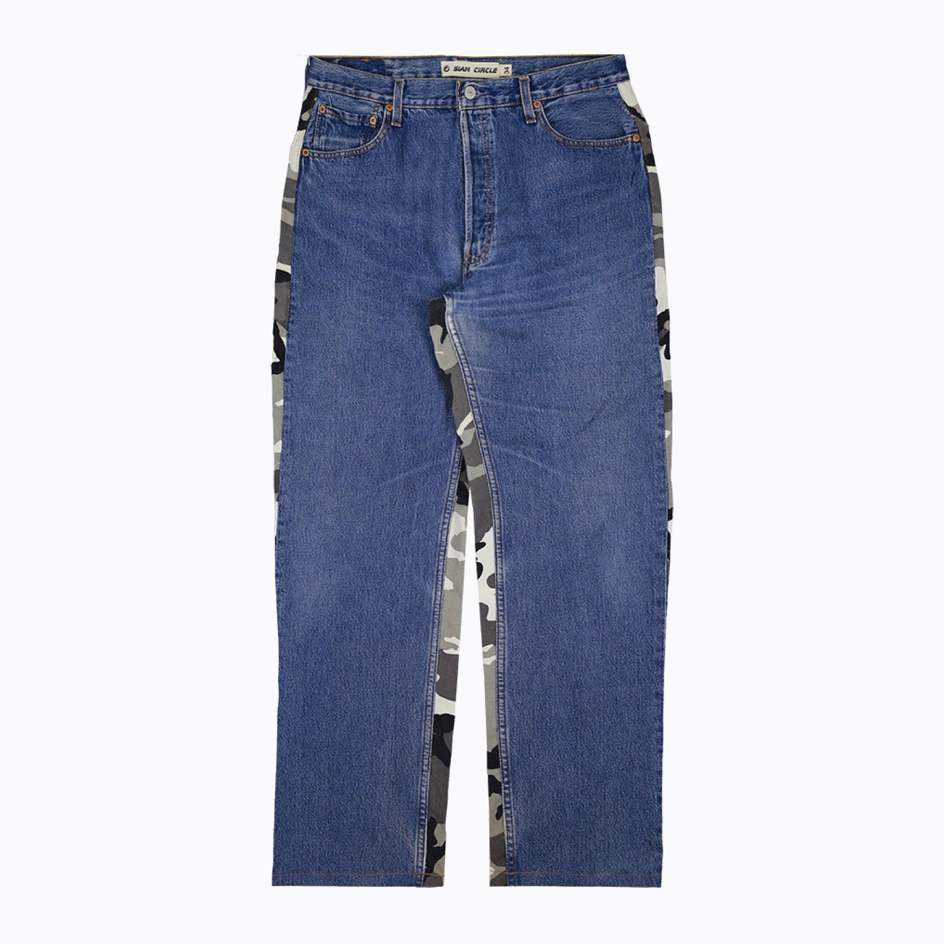The Camo Jeans are made by merging a pair of vintage Levis with a pair of vintage Camo pants.